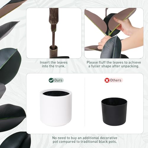 • 【Lifelike Decorations】Our realistic artificial plants indoor. artificial rubber trees keeping evergreen in all seasons, not affected by weather and environment that cause wilting, fake tree creatk a natural and fresh atmosphere, Perfect for home decor living room.