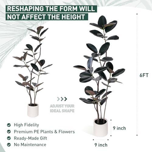 Artificial Rubber Tree – 6 FT Tall Fake Tree with Pot – Large Artificial Plants Indoor, Lifelike Branches & Foliage – Faux Plants Indoor for Home Office Living Room Floor Patio Greening