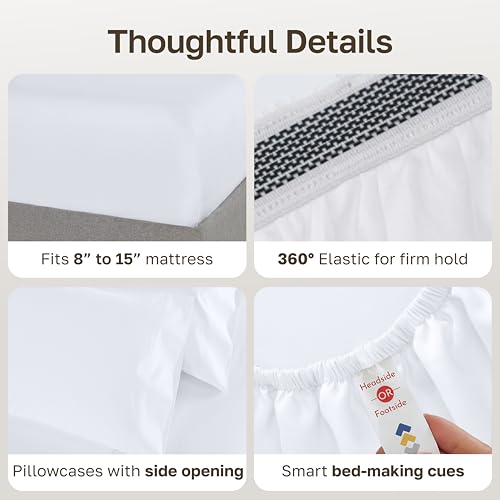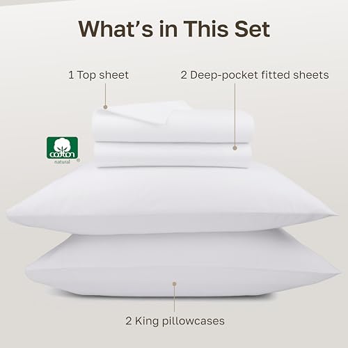 California Design Den Split King Sheets Sets for Adjustable Bed – Luxury 1000 Thread Count Sateen, Thick and Natural 100% Cotton Bed Sheets, Deep Pockets, Durable Bedding Set – White