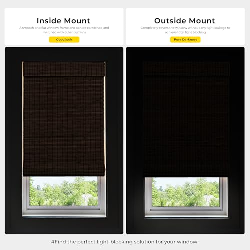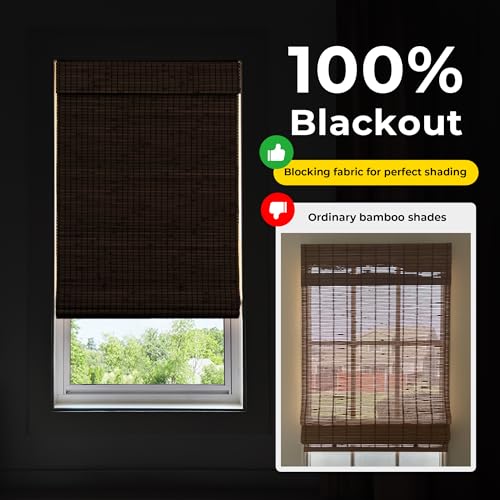 - 2【Complete Blackout for Ultimate Privacy】Designed with a built-in blackout liner, this bamboo Roman shade blocks 100% of sunlight, ensuring total privacy and a peaceful ambiance in any room. Perfect for bedrooms, nurseries, and home offices.