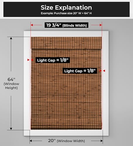 1【Size introduction】The listed size ( 23″ W × 64″ H ) is the window opening size for inside mount. The actual blind will measure slightly smaller ( 22 3/4″ W × 64″ H ) to allow space for mounting. For outside mount, add 2–6 inches to both the width and height of your window to…
