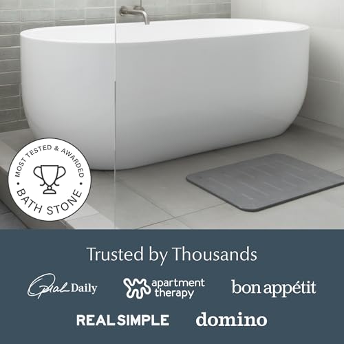 • QUICK-DRYING DIATOMACEOUS EARTH: Our Diatomaceous Earth Stone Bath Mat absorbs up to 150% of its weight in moisture that evaporates within seconds. This ceramic-like material feels like natural stone, offering a hygienic and durable alternative to traditional bath mats.
