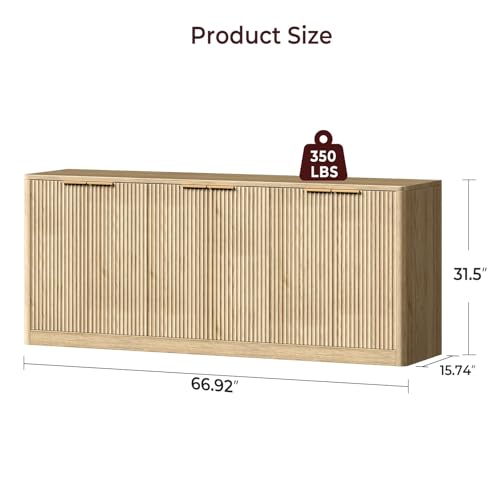 Evermagin 67" Fluted Oak Buffet Cabinet Sideboard with Storage, Large Credenza with 6 Doors, Wood Mid Century Modern Sideboard for Kitchen and Living Room (67"*31.5"*15.7")Evermagin 67″ Fluted Oak Buffet Cabinet Sideboard with Storage, Large Credenza with 6 Doors, Wood Mid Century Modern Sideboard for Kitchen and Living Room (67″*31.5″*15.7″)
