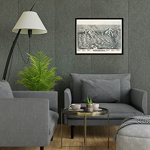 HISTORIX Vintage 1890 White Mountains Map – 19×25 Inch Black Framed Vintage Map of the White Mountains – Bird’s Eye View Map of White Mountains New Hampshire Shows Index to Summits