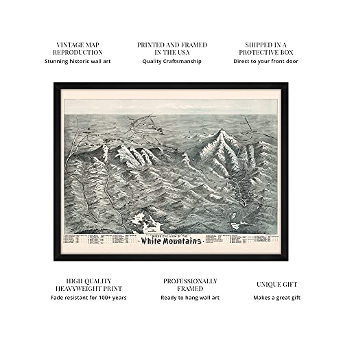 • VINTAGE MAP FRAMED: You’ll love this high-quality black framed historic reproduction of 1890 White Mountains Map. Our ready-to-hang maps are printed and framed in the USA by professional art framers using the highest quality materials. Each order is inspected for quality. This beautiful artwork is a perfect addition to your themed decor. Vintage maps look great in the home, study or office. They also make an unforgettable gift.