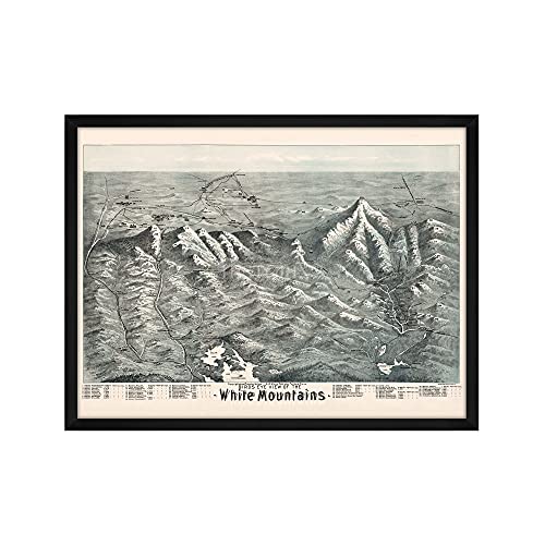 HISTORIX Vintage 1890 White Mountains Map - 19x25 Inch Black Framed Vintage Map of the White Mountains - Bird's Eye View Map of White Mountains New Hampshire Shows Index to SummitsHISTORIX Vintage 1890 White Mountains Map – 19×25 Inch Black Framed Vintage Map of the White Mountains – Bird’s Eye View Map of White Mountains New Hampshire Shows Index to Summits