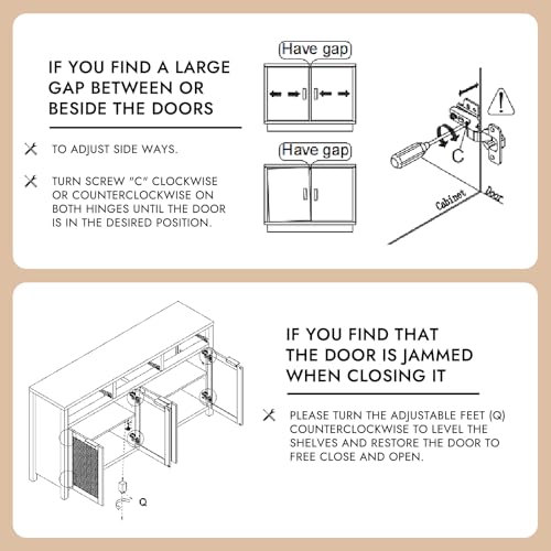 - Easy to Assemble-Our rattan cabinet comes with easy-to-follow instructions, complete with illustrations and clearly marked parts. All screws are individually labeled and packed in separate bags for quick identification. For added security, please secure the console cabinet to the wall using the included anti-tip kits.
