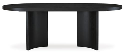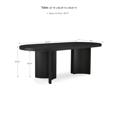 DINING TABLE: Inspired by art deco design, this oval dining table makes a lasting impression. Its magnificent curved silhouette and architectural pedestal are enhanced with a rich layered black finish HANDSOMELY CRAFTED: Made with hardwood solids, oak veneer and MDF substrate with a black finish on textured wood grain surface. Seats up to 8 ASHLEY…