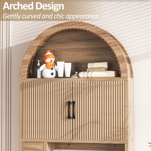 • Elegant Arch Design: Spurgehom Over the toilet storage cabinet, featuring a charming arched top and stylish wooden doors. This piece is the perfect combination of style and practicality, with a minimalist color palette and look that complements a variety of bathroom décor