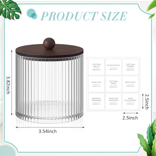 Yaomiao 6 Pcs Ribbed Bathroom Canisters Apothecary Jars with Brown Bamboo Lids and Label Stickers, 18 oz Plastic Canister with Fluted Design for Cotton Ball, Swab, Floss Picks House Storage