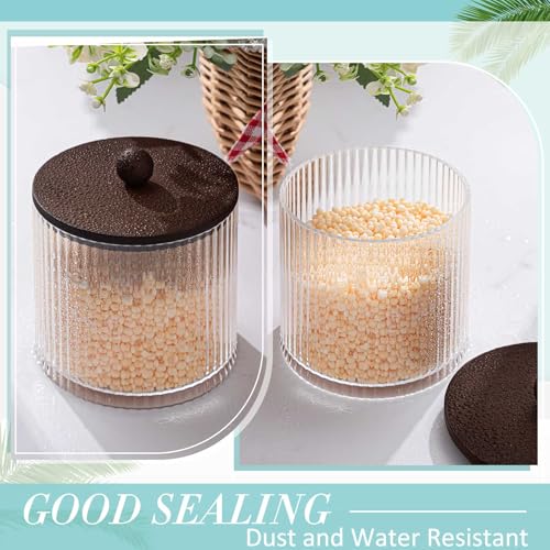 - Material: the bathroom cotton swab canisters with lids body is clear and transparent, not easy to break; Brown bamboo lid is naturally fashion; You can easily see the contents inside, and you can also create a charming atmosphere for your home; Please note that the lid is a bamboo lid; Please dry it after you encounter water