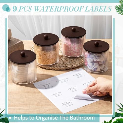 - Packing List: you will receive 6 transparent acrylic cotton swab holders; The fashion combination of acrylic tanks and brown bamboo lids takes into account durability and beauty; At the same time, the package also includes 1 bathroom label sticker, including 9 small stickers; Add a hint of elegance to your bathroom and toilet decoration