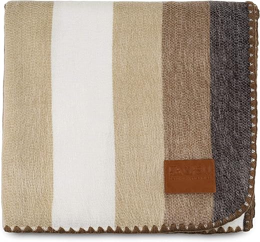 QISU Alpaca Wool Blanket Throw | Large, Beautiful, Warm, Stripes | 85 x 65 inches | Ultra-Soft, Hypoallergenic and Breathable | Non-Itchy or Scratchy Fabric (Camel Thick Stripe)